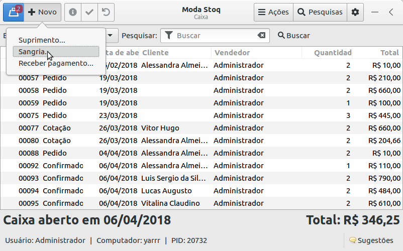 2- Clique no botão Novo e selecione a opção Sangria.